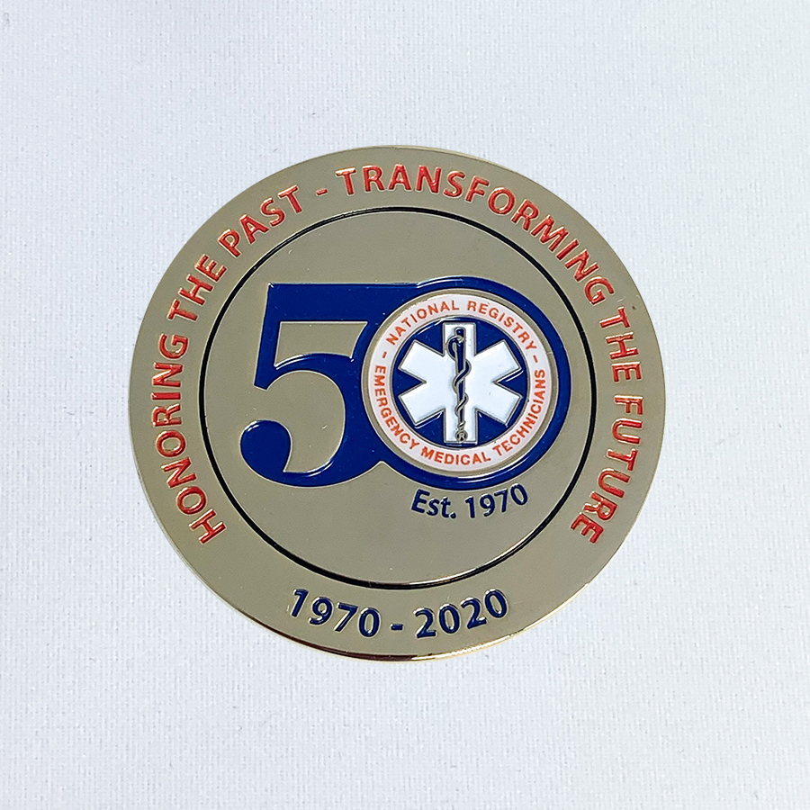 A must-have for any Nationally Registered Emergency Medical Service Provider or challenge coin collector. This beautifully crafted challenge coin celebrates the 50th Anniversary of the National Registry of EMTs (1970 to 2020), as well as the future of EMS. Measuring 2”, this is the official 50th Anniversary challenge coin from the National Registry of EMTs.