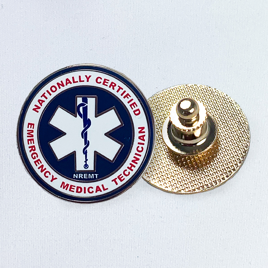 Lapel Pin with clutch back and enameled. This pin is available to Nationally Registered EMTs.