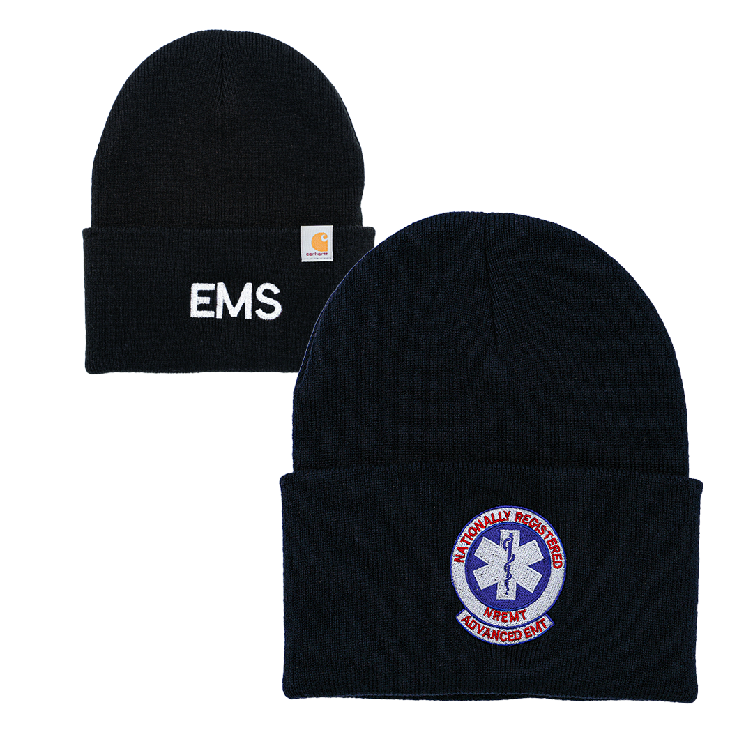Let the community know you are a Nationally Registered Advanced EMT (AEMT) during the cold months with this premium Carhartt Watch Cap is available in BLUE or BLACK. This is the Carhartt Watch Cap 2.0, an updated version of their classic winter cap. This version includes a bold EMS embroidered on the reverse side.