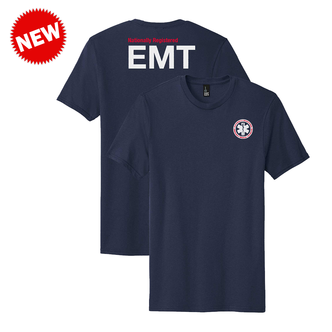 By popular demand! Here is the official National Registry EMERGENCY MEDICAL TECHNICIAN (EMT) t-shirt available in BLUE or BLACK. You’ve earned your credentials. Now it’s time to proudly display your National Registry accomplishment for the world.
